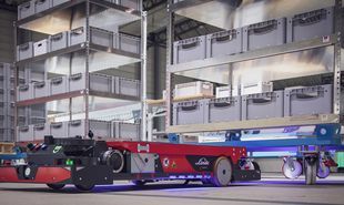 C-MATIC HP (HP für High Performance) heisst der extrem flache Robot-Transporter von «idealworks», der dort als iw.hub entwickelt wurde, und jetzt mit seinen nur 222 mm Höhe bei Linde MH zum Unterfahren und Aufnehmen von Paletten und Transportgestellen mit Rädern verfügbar ist.